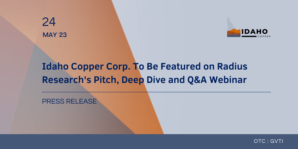 Idaho Copper Corp. To Be Featured on Radius Research’s Pitch, Deep Dive and Q&A Webinar